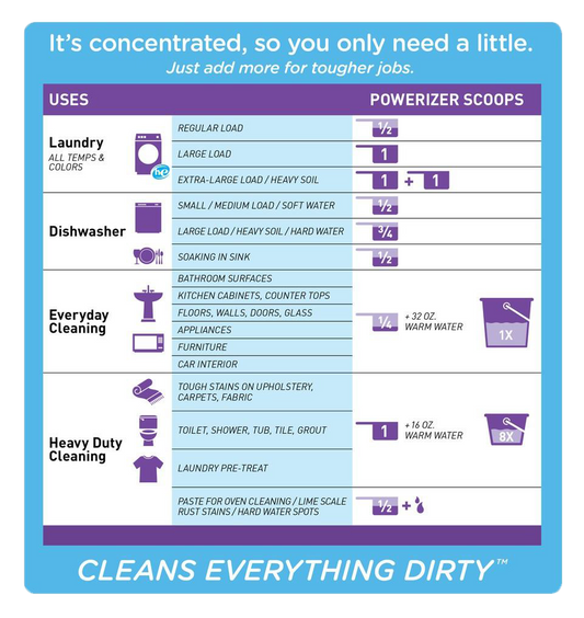 Oftentimes we see “multi-purpose” cleaner and don’t pay much attention. BUT, Powerizer Complete has been awesome not only to brighten and clean our laundry but equally has been great with our dishwasher. We’ve used OxiClean and others but find this to be a step above!!!!