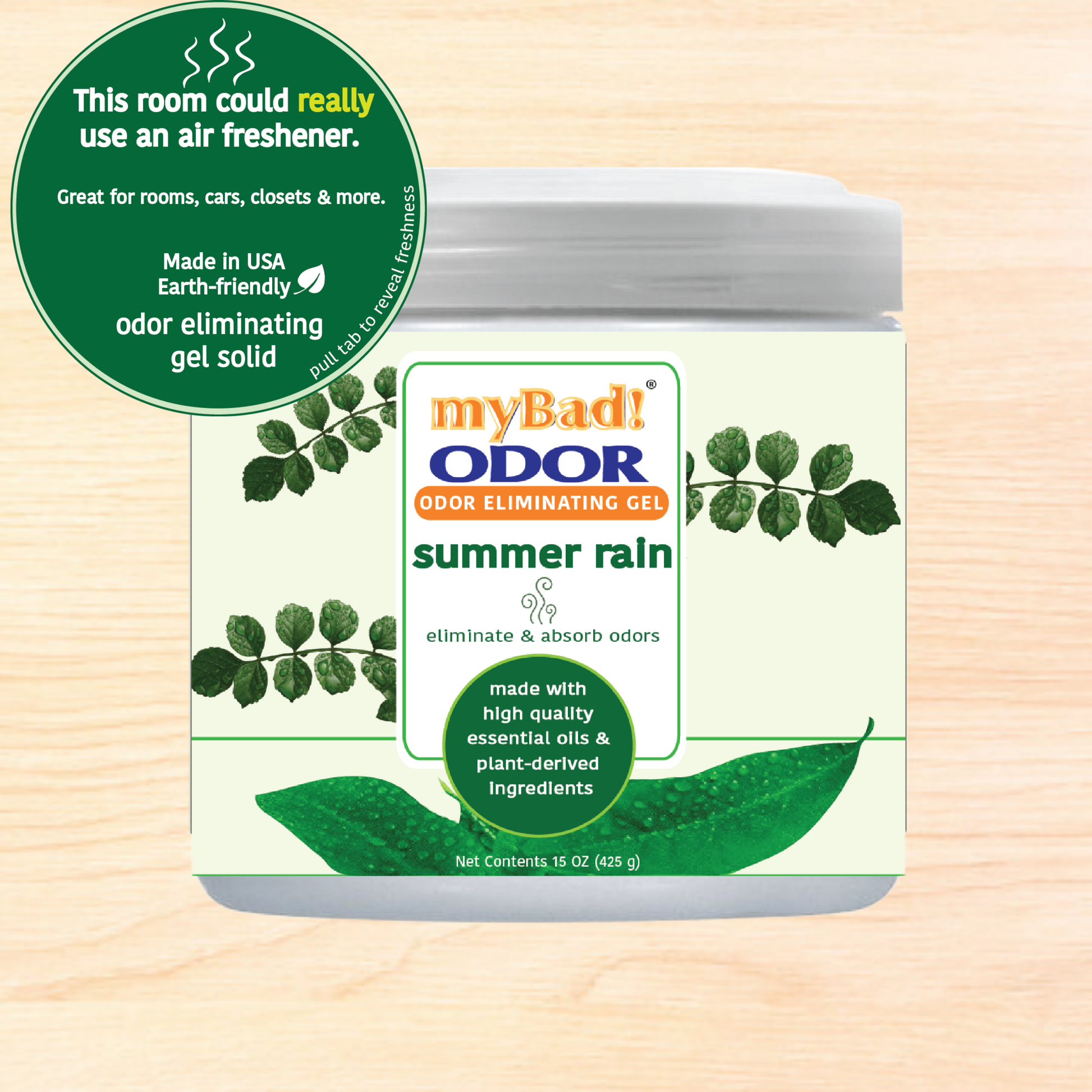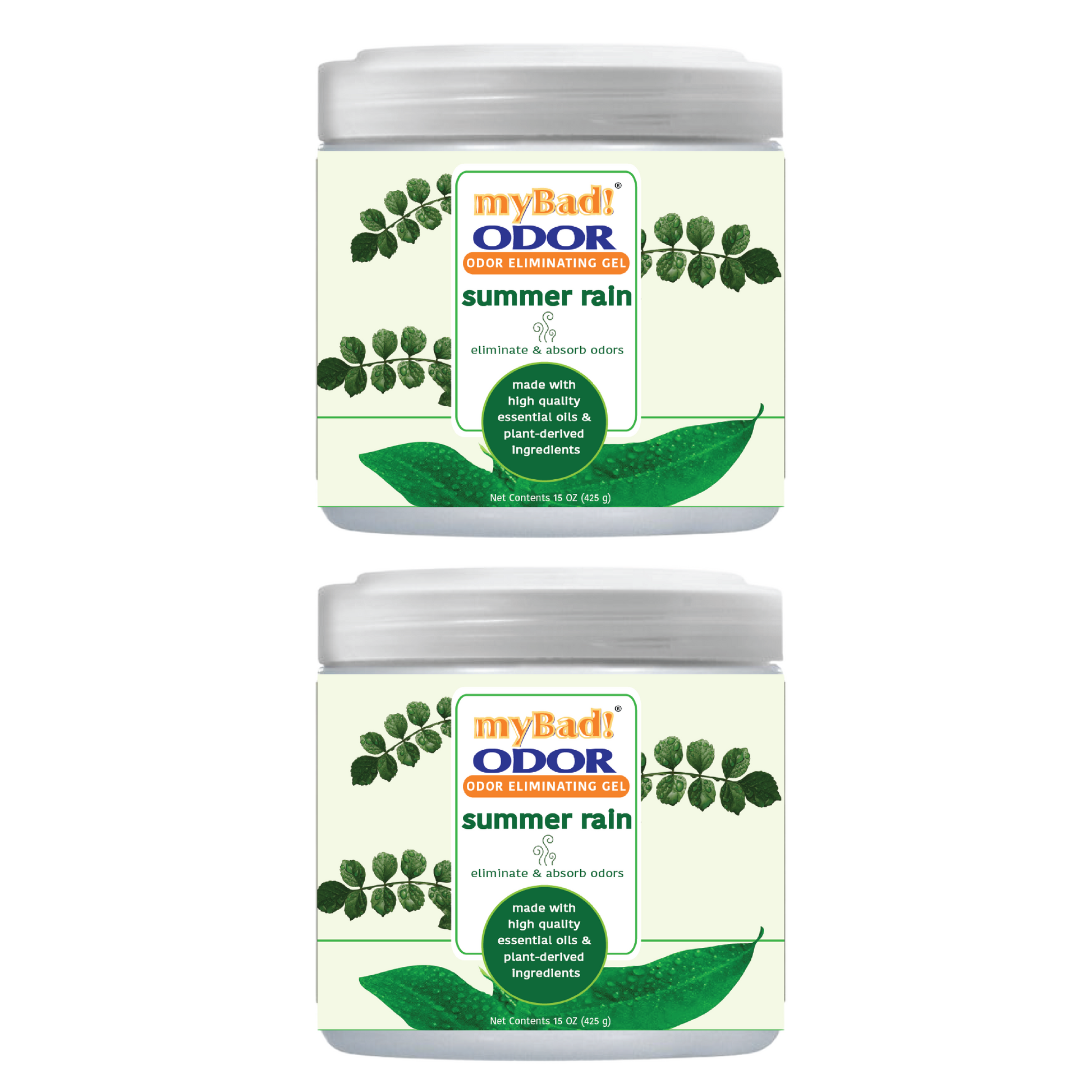 my Bad! Odor Eliminator Gel 15 oz - Summer Rain (2 PACK) Air Freshener - Eliminates Odors in Bathroom, Pet Area, Closets