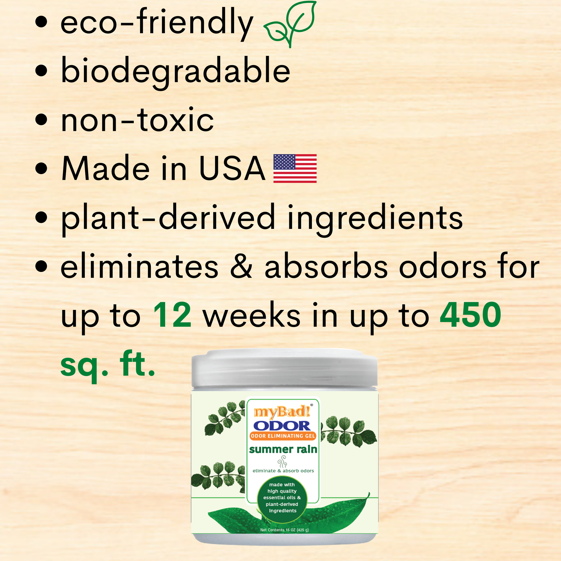 • Eliminates & absorbs odors for up to 12 weeks in up to 450 square feet